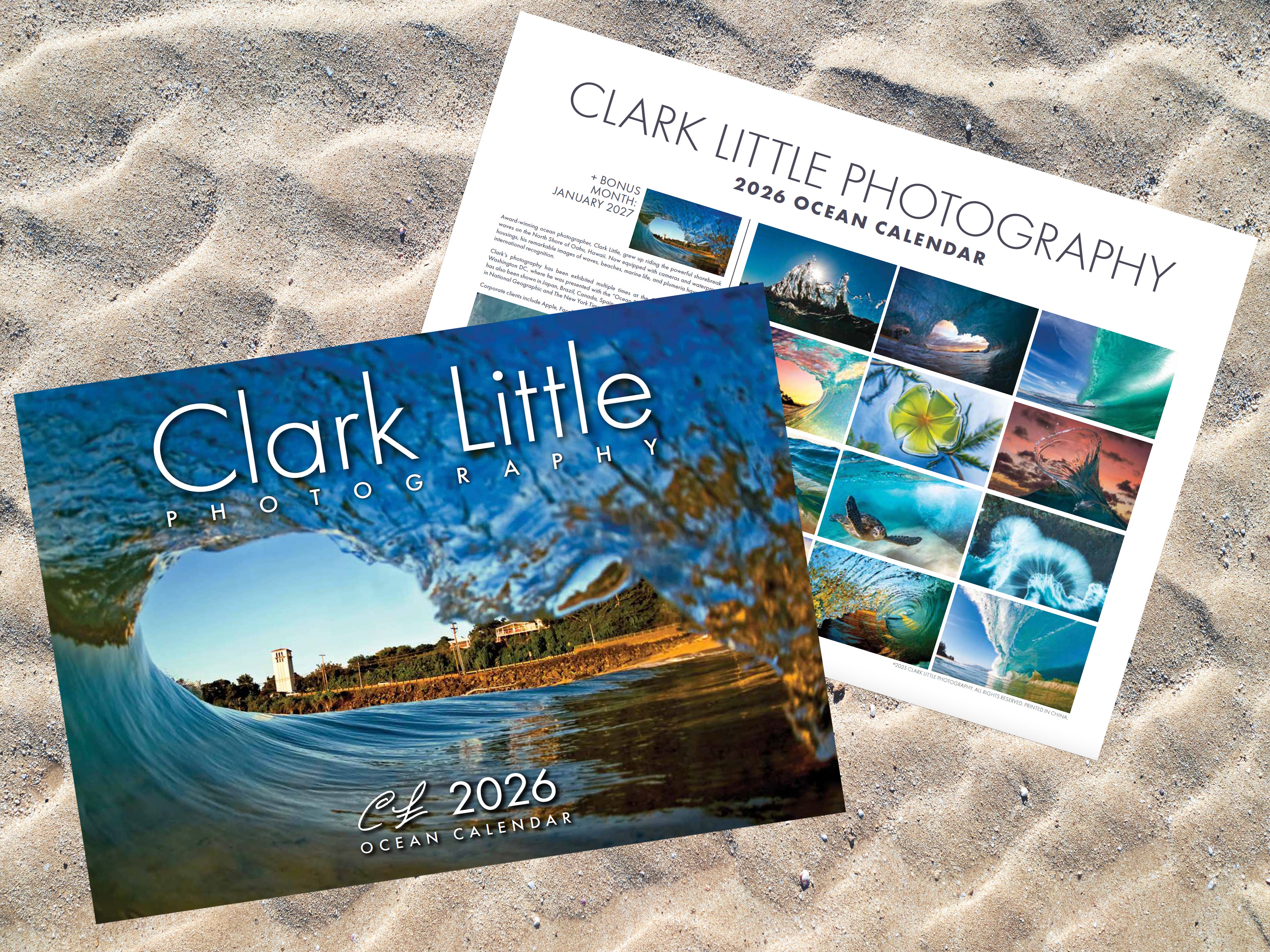 The 2026 Ocean Calendar is sized 9"x12" (18"x12" unfolded) and includes 13 images total - one for each month in 2026 and one for January 2027. The calendar features many new images taken from inside epic barrels, stunning marine life and serene rainbows and plumeria. We've included some of Clark's most beloved images as well like 'Rainbow Shave Ice'. The cover gives you a glimpse into 'Clarks View' of the iconic Waimea Bay.